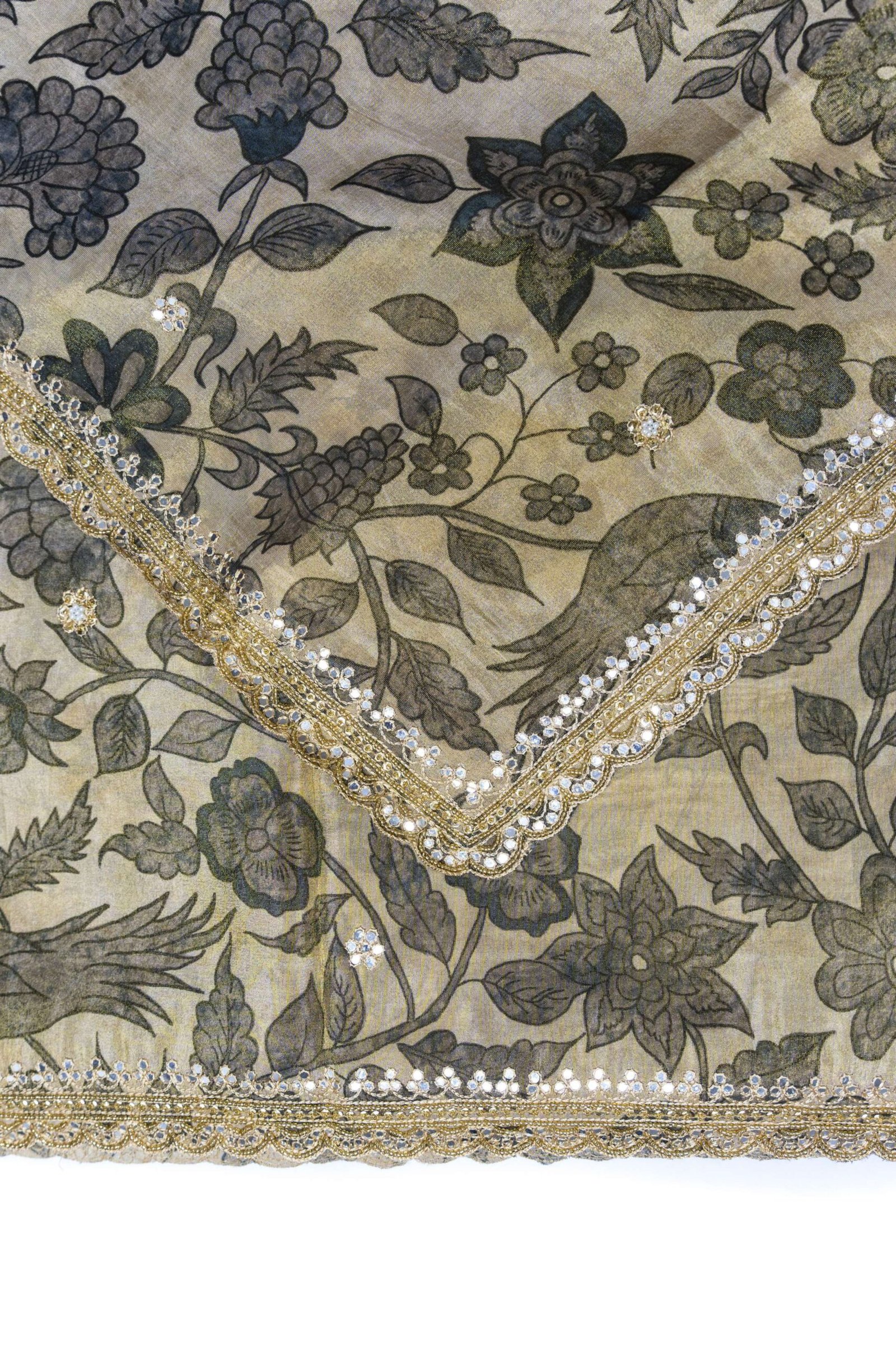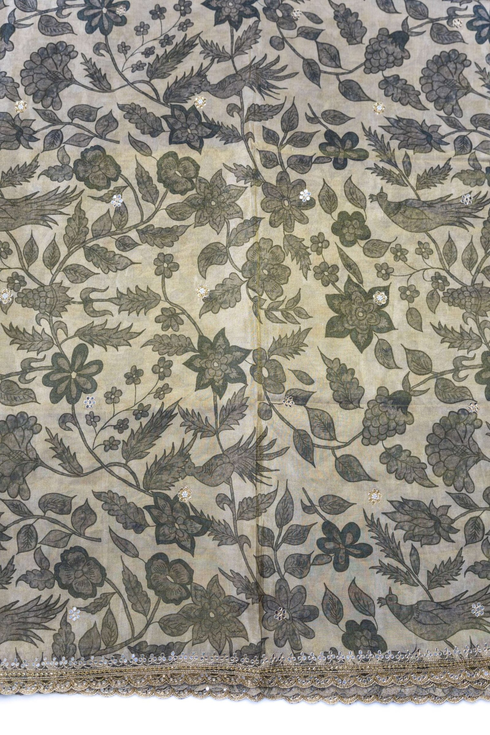 DETAILS : SAREE WITH MADHUBANI PRINT AND SCALP BORDER WITH STAIN GLASS AND MOTI WORK