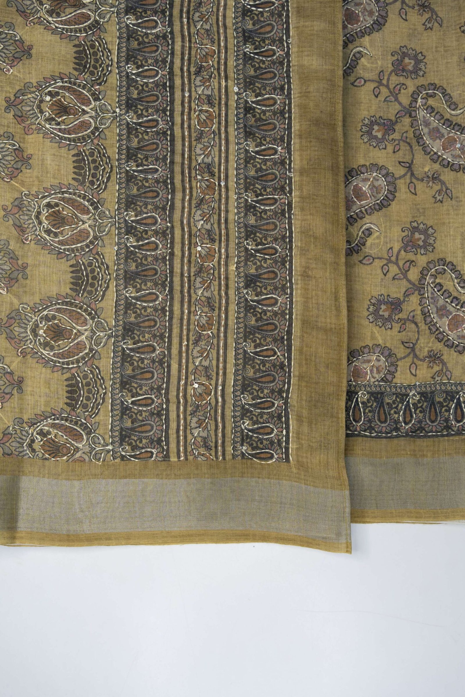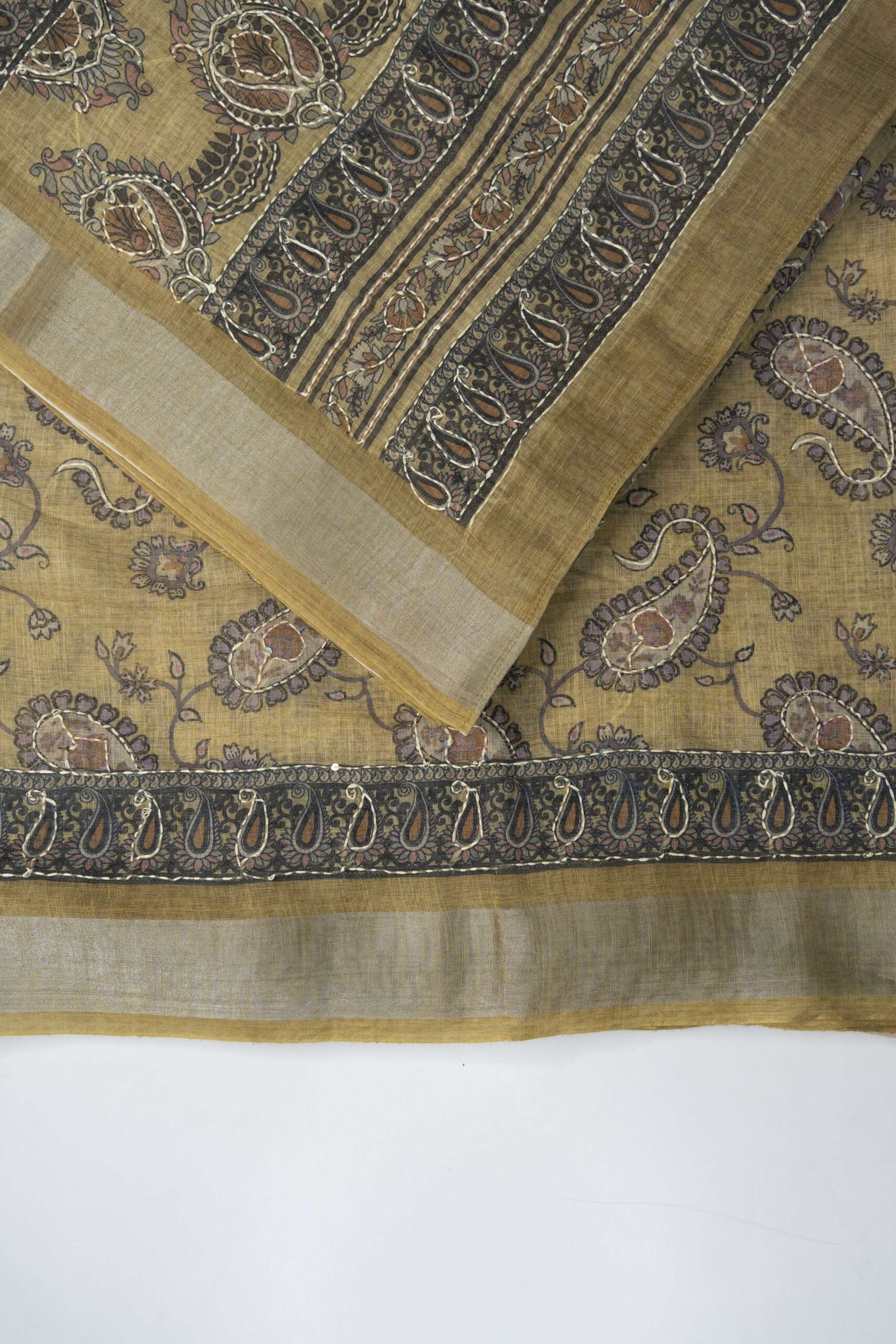 DETAILS : SAREE WITH ZARI BORDER AND FULL PRINT WITH KATHA WORK