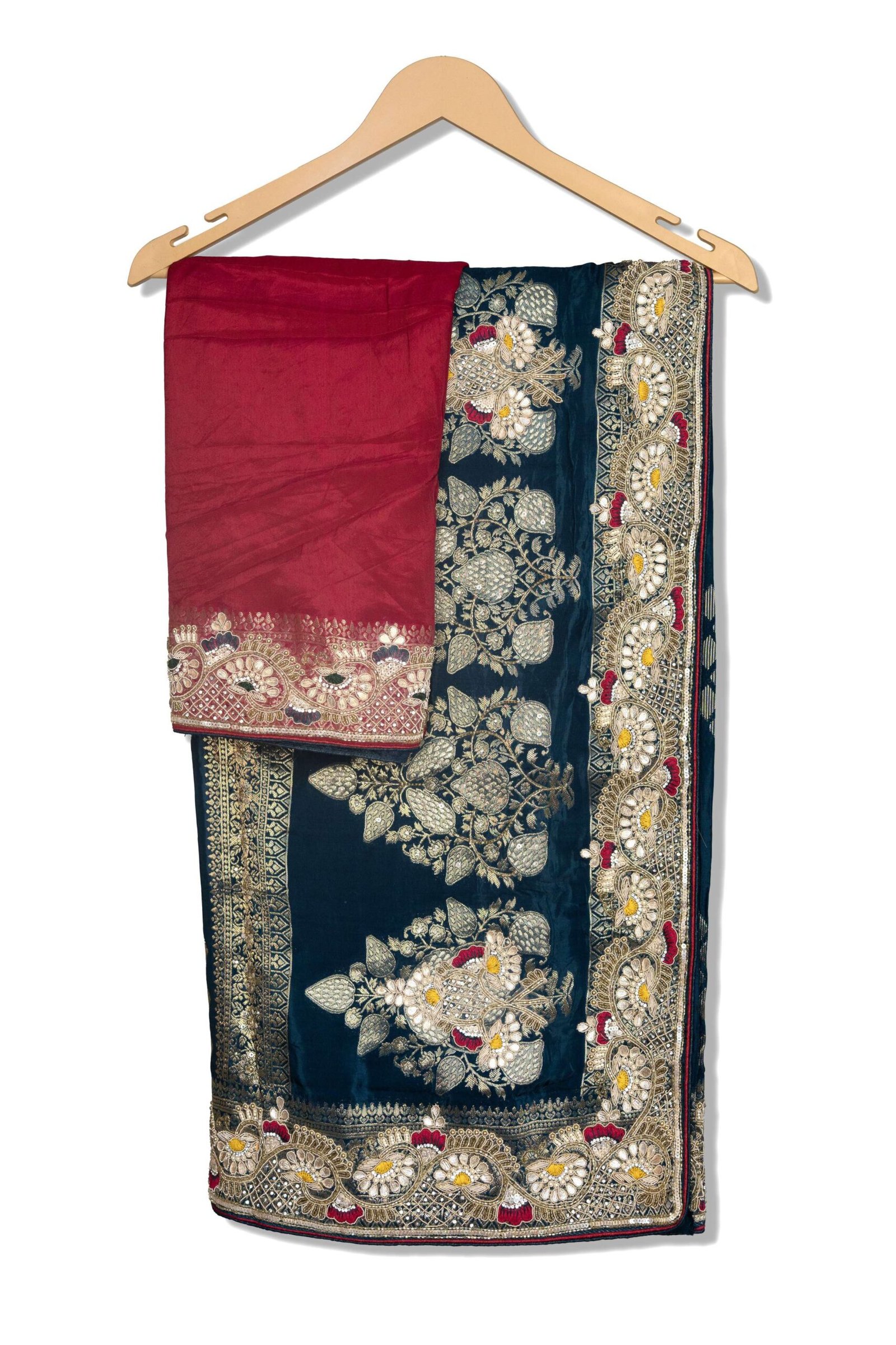DETAILS : SAREE WITH HAND WORK BORDER WITH DABKA GOTA PEARL AND STONE WORK