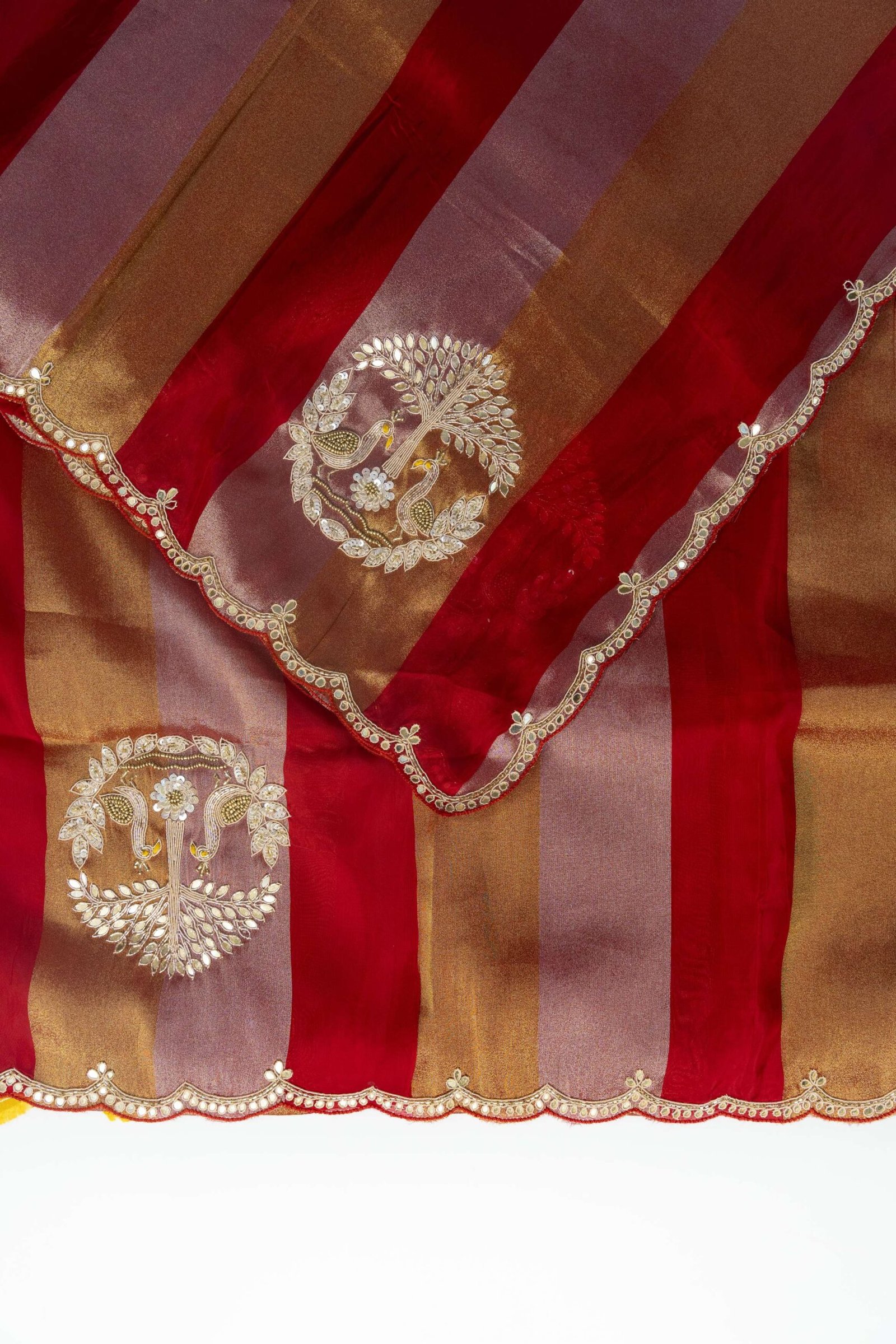 DETAILS : SAREE WITH SCLAP BORDER AND DABKA MIRROR AND KARDANA WORK