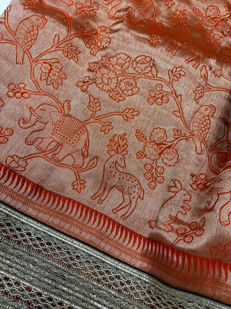 DETAILS: SAREE WITH MADHUBANI BODY PRINT AND BORDER LACE WORK